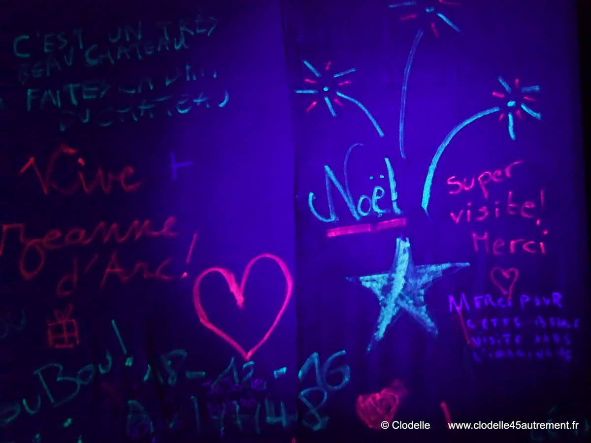 Tag le château en fluo: dans la salle noire du château, n’oubliez de noter un petite message sur les murs, c’est exceptionnellement autorisé!